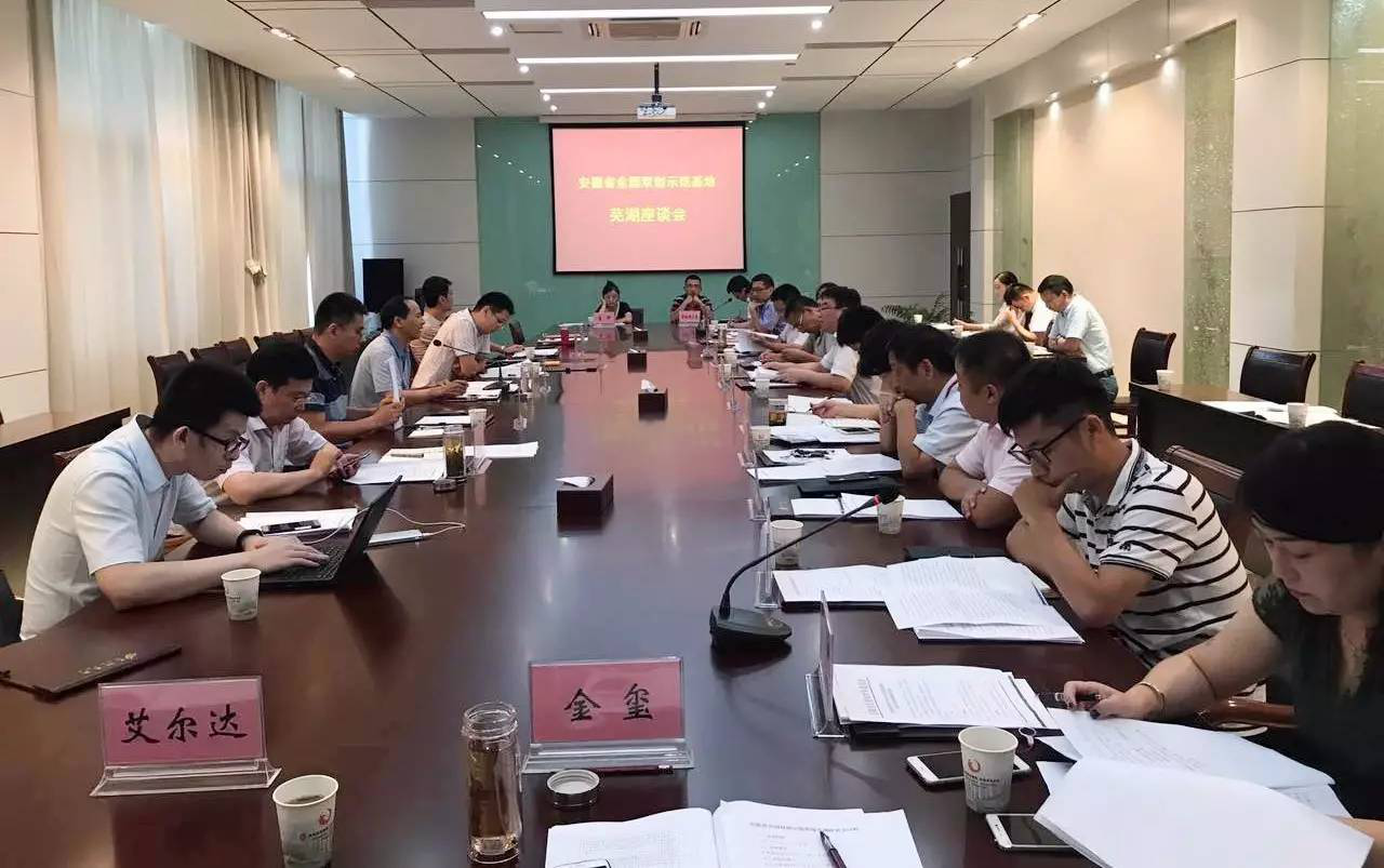 8月23日,安徽省全国双创示范基地座谈会在芜湖高新区召开,省发改委高新技术产业处处长李玉清主持会议。芜湖市发改委、合肥高新区、芜湖高新区、中科院合肥物质科学研究院、合肥荣事达电子电器集团以及芜湖高新区双创企业代表、众创空间、孵化器负责人、创客代表参加座谈会。