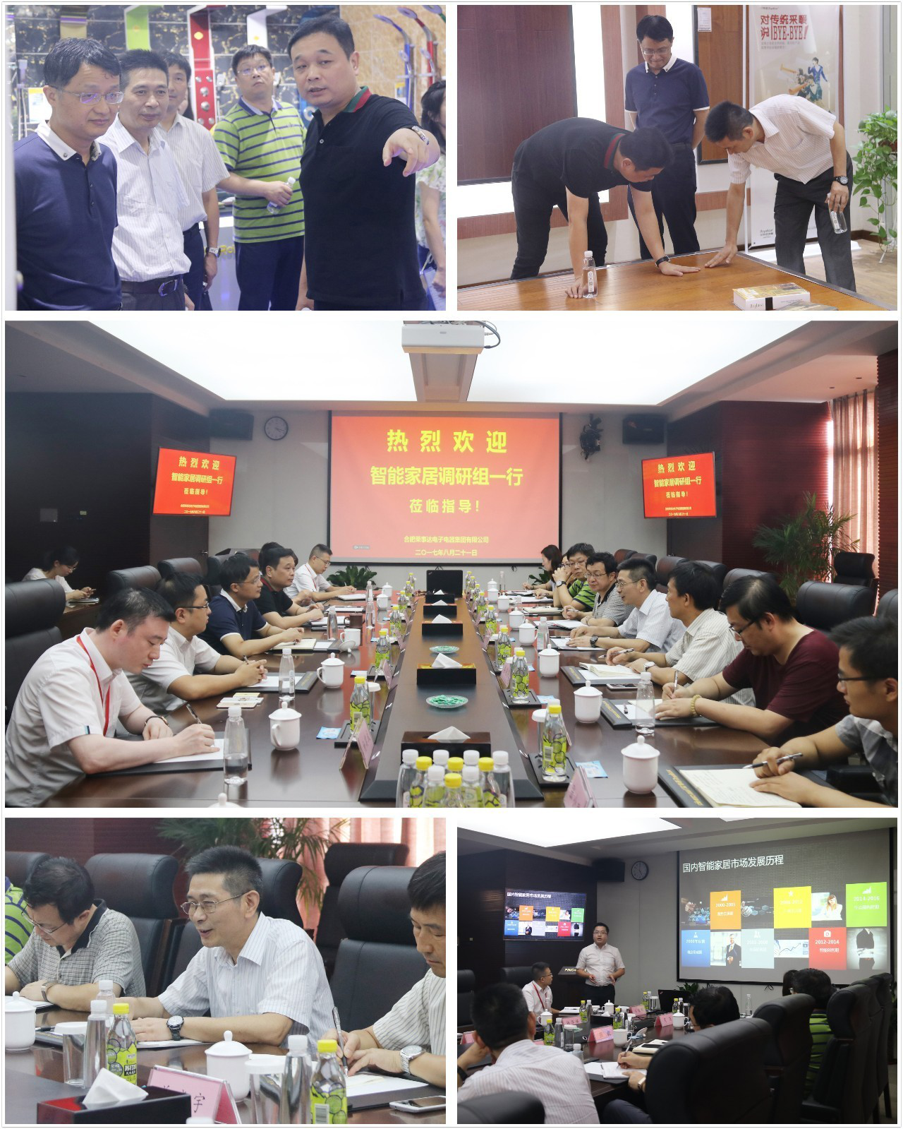 8月21日,安徽省经信委党组成员、总工程师徐文章,安徽省工业和信息化研究院院长叶圣带领的智能家居调研组一行,前来荣事达智能家居全价值链双创中心参观考察。