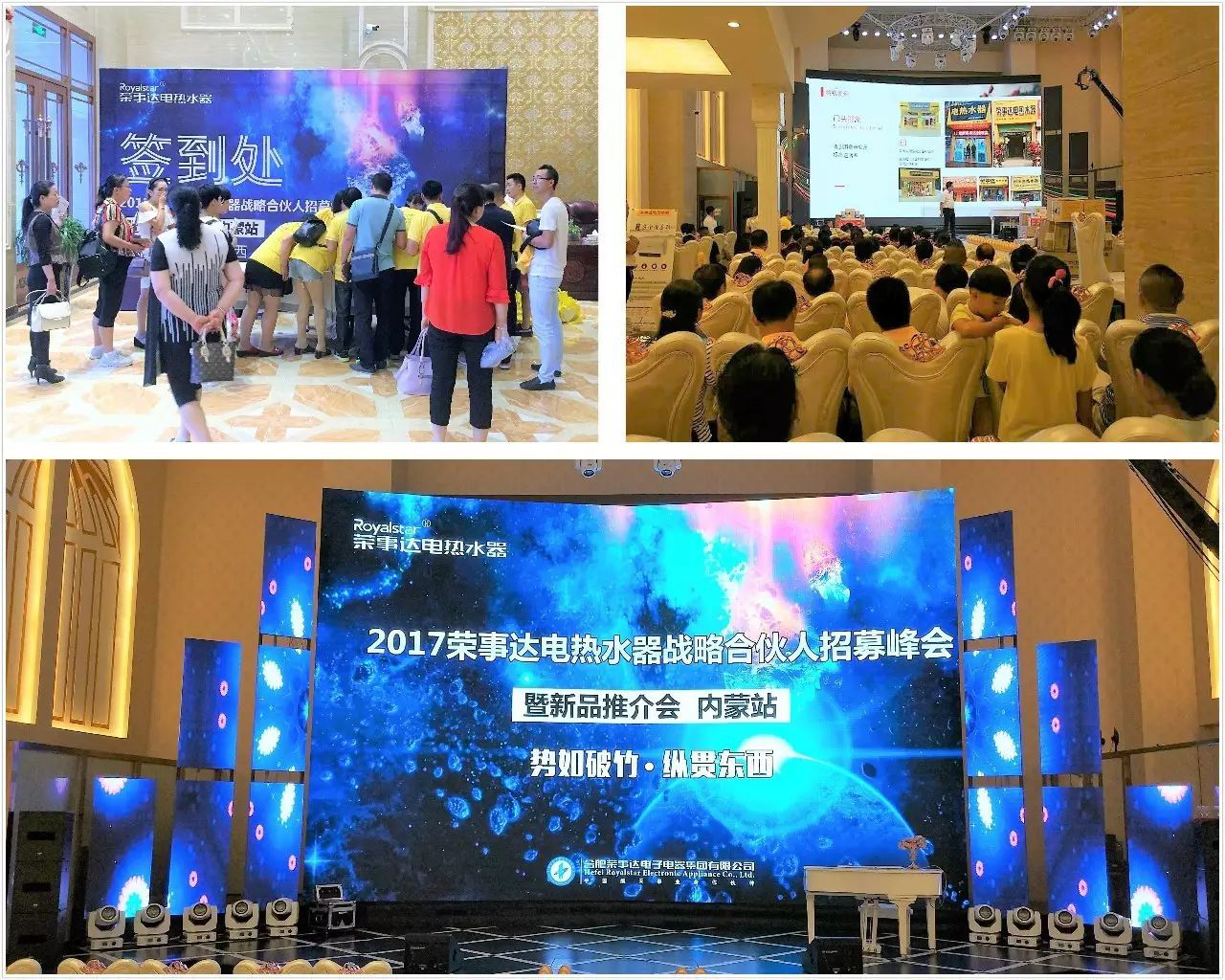 8月19日,荣事达电热水器事业部以“势如破竹 纵贯东西”为主题的战略合伙人招募峰会第二站在内蒙古呼和浩特市召开,聚集了内蒙古当地数百名热水器行业经销商。