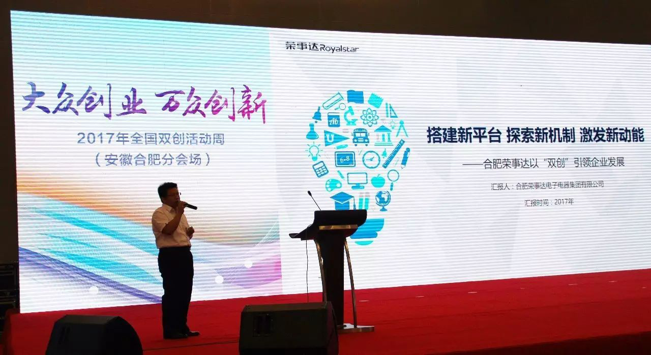 荣事达代表在活动现场作了题为《搭建新平台 探索新机制 激发新动能——合肥荣事达以“双创”引领企业发展》的报告,详细介绍了荣事达双创的背景与战略定位,对荣事达双创模式进行了深入解读,并分享了荣事达在践行双创的道路上所取得的一系列经验与成果。