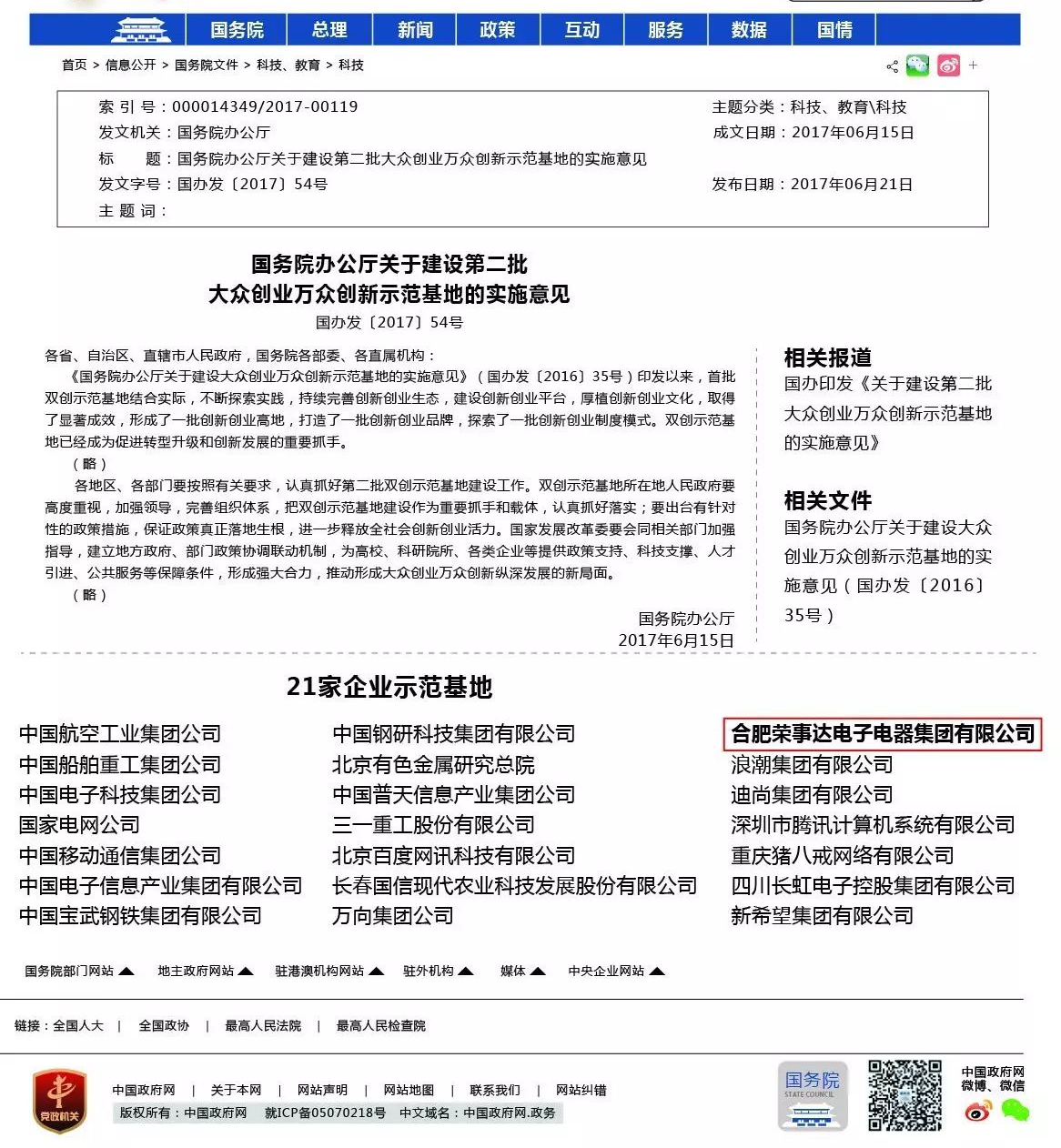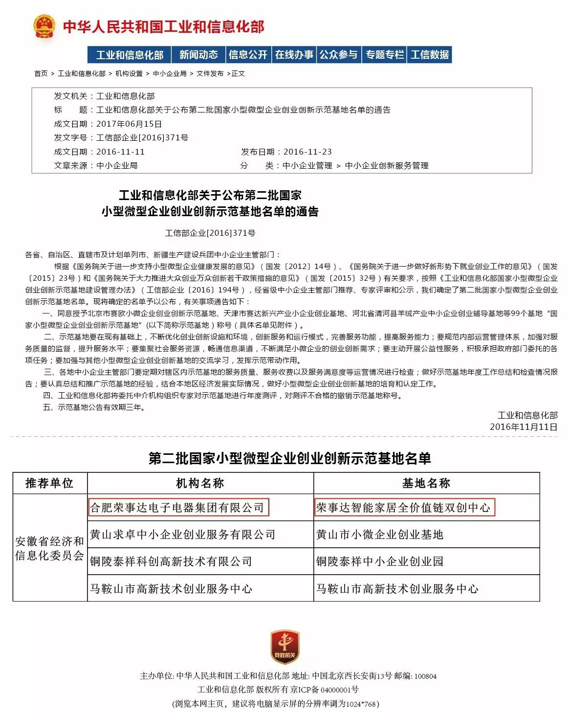 ↑↑↑荣事达成功跻身国务院第二批“国家双创示范基地”