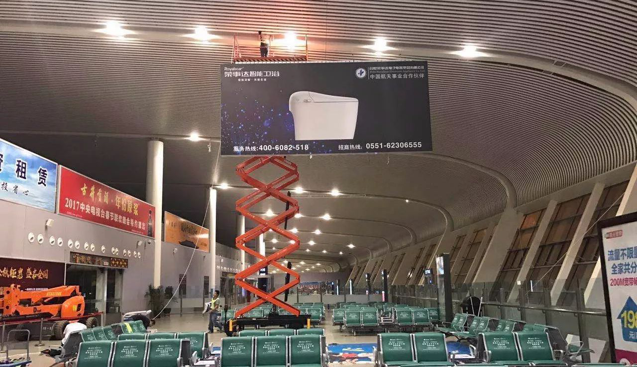 近日,荣事达智能卫浴广告牌登陆合肥新桥国际机场候机大厅。