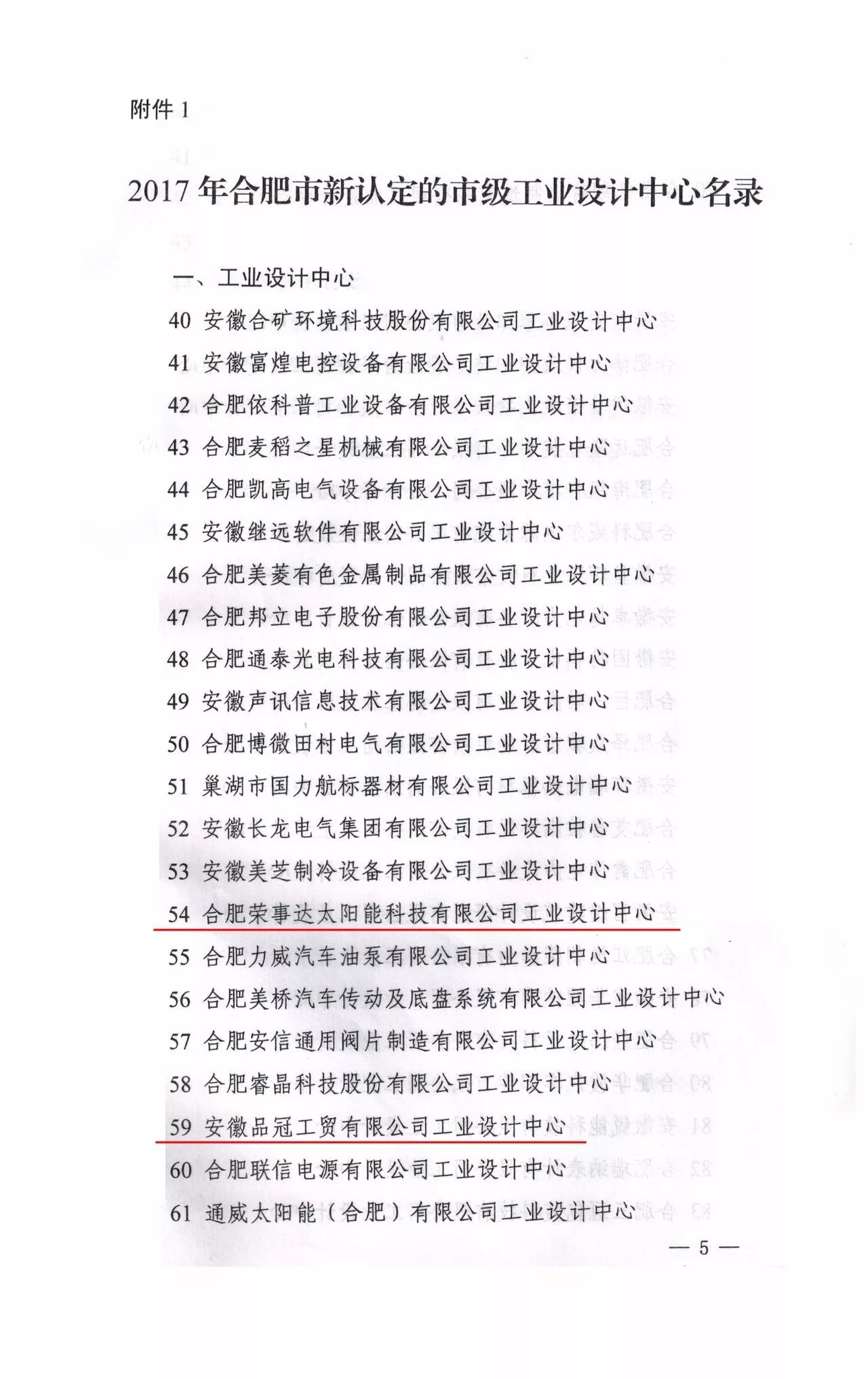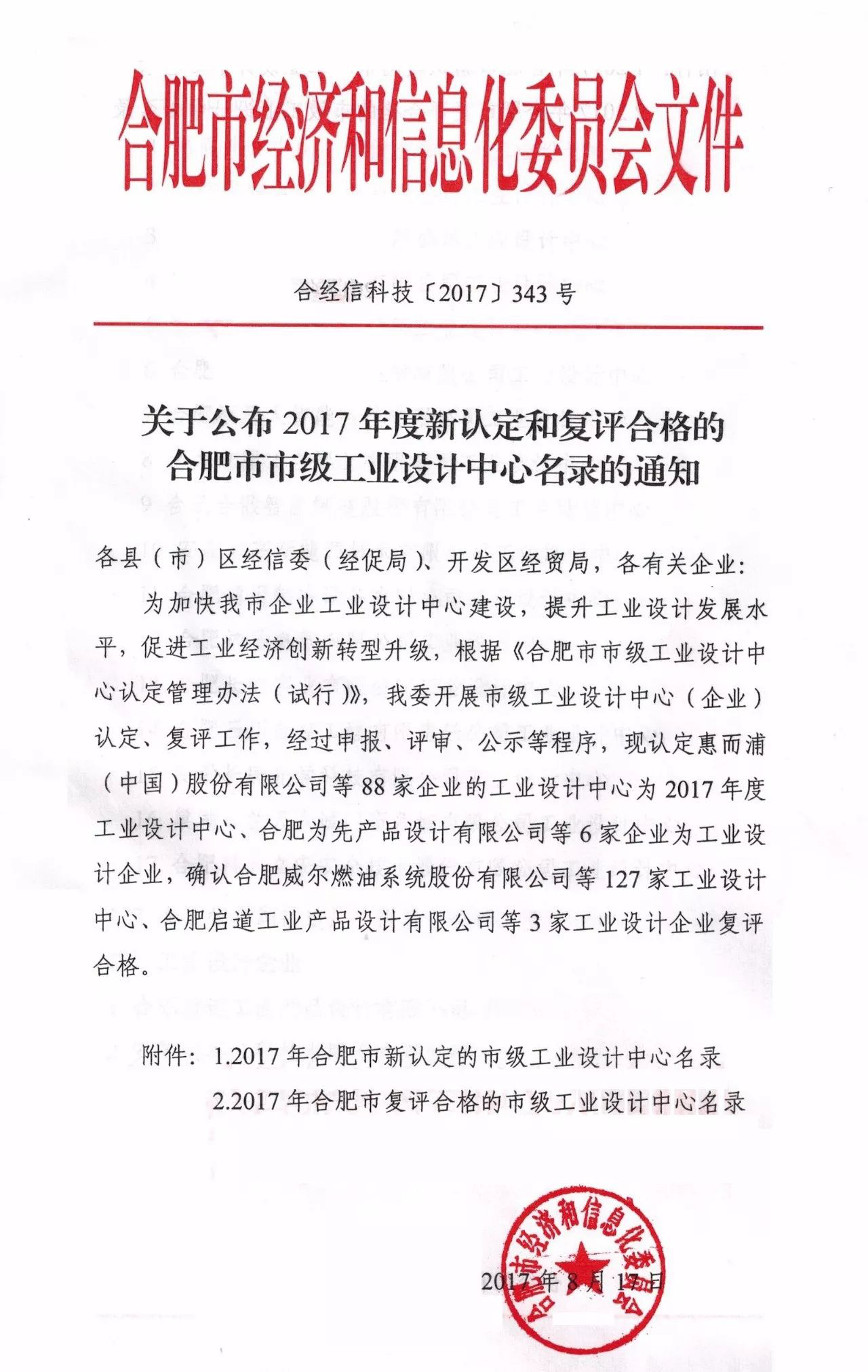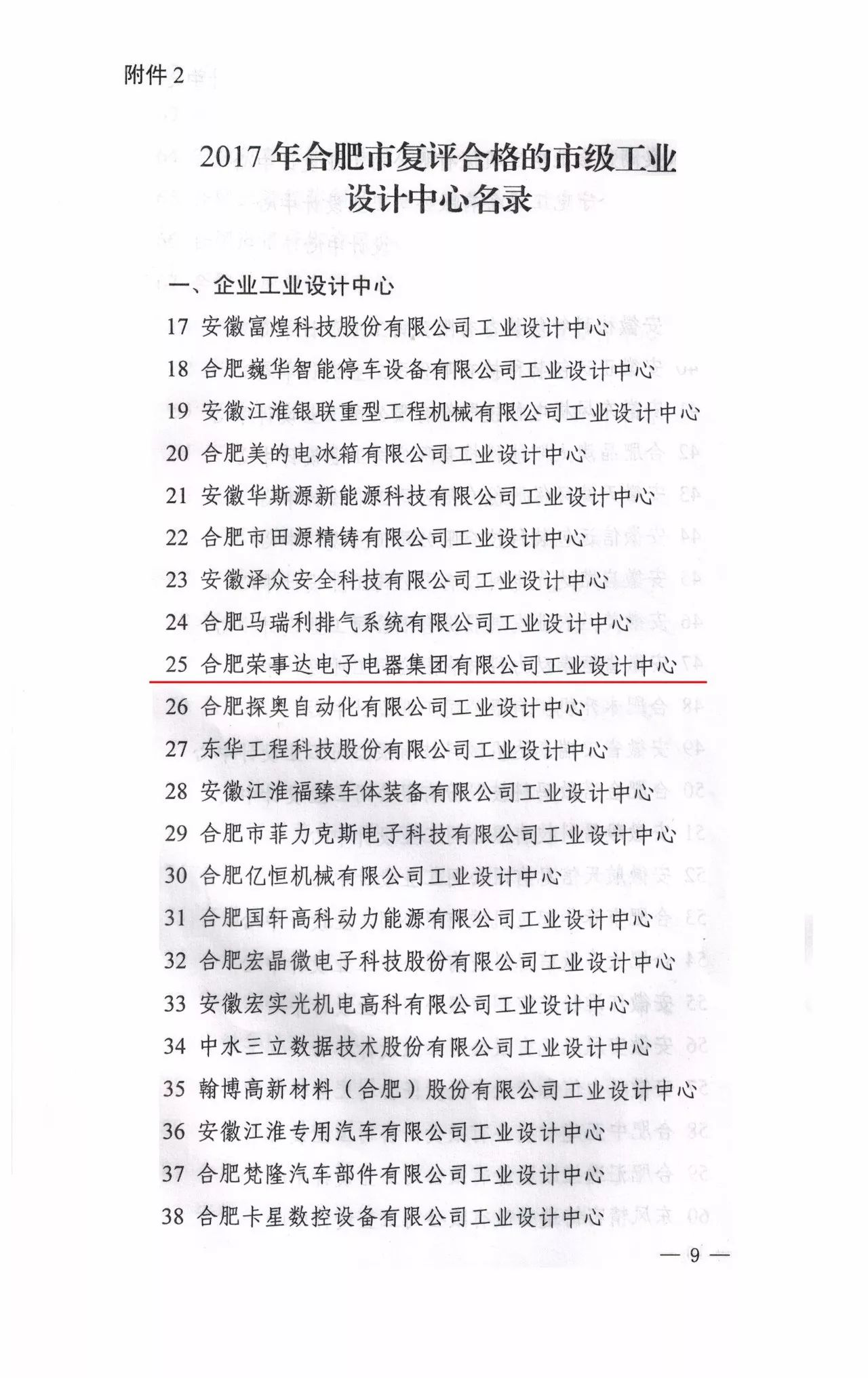 近期,合肥市经信委发布《关于公布2017年度新认定和复评合格的合肥市市级工业设计中心名录的通知》。合肥荣事达电子电器集团有限公司工业设计中心继2016年初次获评市级工业设计中心后,成功列入复评合格的市级工业设计中心名录;同时,集团旗下的合肥荣事达太阳能科技有限公司工业设计中心、安徽品冠工贸有限公司工业设计中心也成功列入新认定的中心名录。
