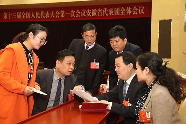 潘保春与其他全国人大代表讨论 合肥荣事达电子电器集团有限公司供图