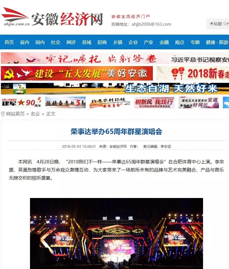 中国新闻网、腾讯新闻、网易新闻、搜狐新闻、凤凰新闻、华声在线、一点资讯、今日头条、安徽网、安徽经济网等众多媒体争相报道本次演唱会盛况。一个始终将中国制造业振兴视为己任的大企业风采,再度呈现在国人面前。