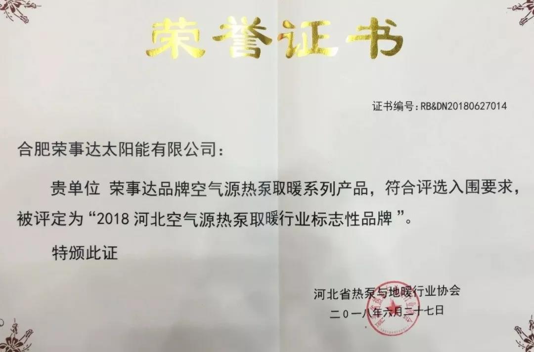 上周,在由河北省热泵与地暖行业协会主办的2018全国空气源热泵取暖技术与应用资源对接会中,荣事达更是成功突围,斩获“2018河北空气源热泵取暖行业标志性品牌”称号!这是继获得“北京清洁能源突出贡献单位”、“山东清洁供暖突出贡献单位”荣誉后,大众对荣事达空气能创客项目的又一肯定。