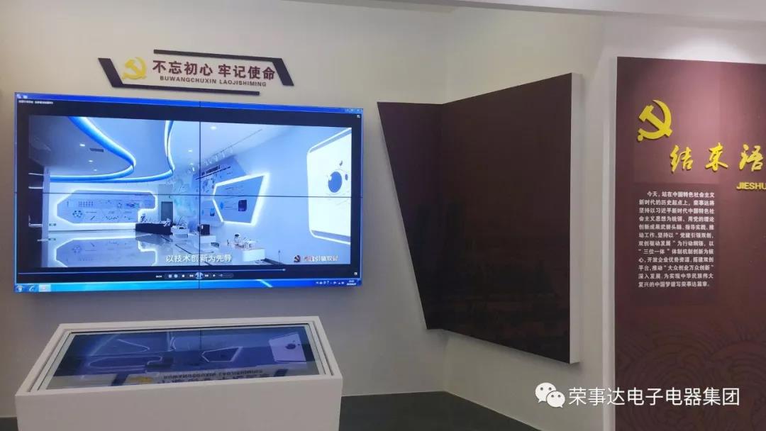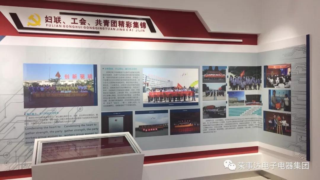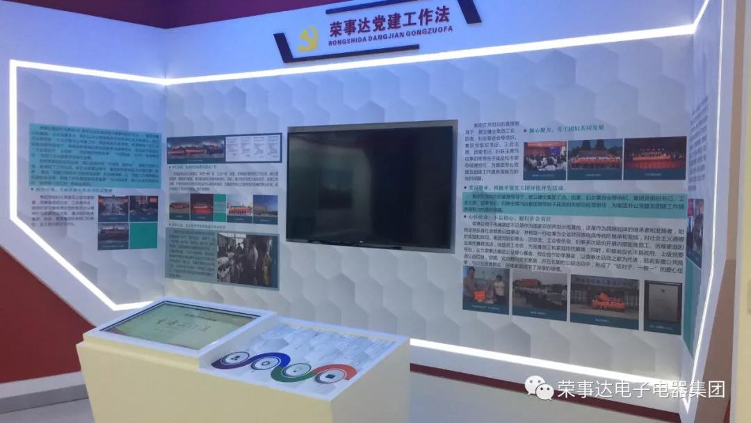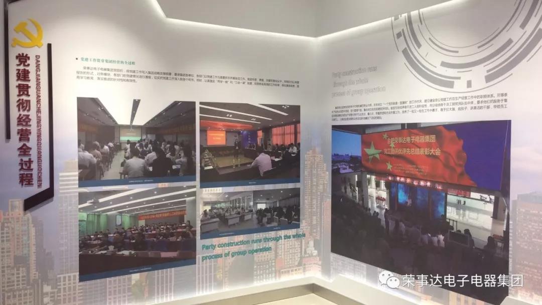 光辉历史之后,第三个展区展示的便是当下荣事达的党建风采。本展区通过艺术图文、电子触摸屏、建筑剪影等形式,从多个角度诠释了荣事达丰富多彩的党建工作——