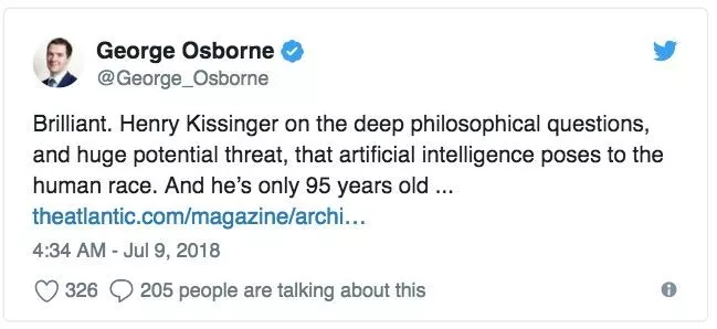 苏格兰国家党主席Nicola Sturgeon在Twitter上推荐基辛格的文章