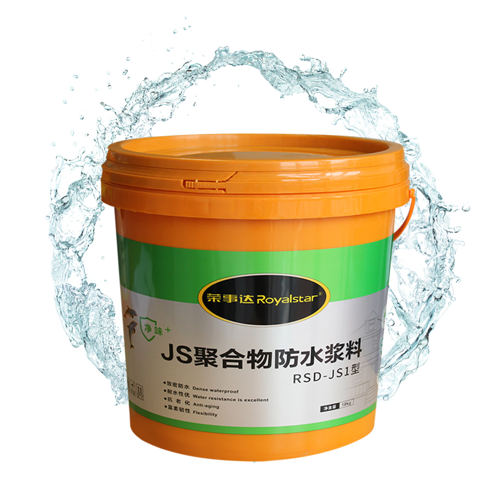 JS聚合物防水浆料是一种以聚丙烯酸酯乳液、乙烯-醋酸乙烯酯共聚乳液等聚合物乳液与各种添加剂组成的有机液料,和水泥、石英砂、轻重质碳酸钙等无机填料及各种添加剂所组成的无机粉料通过合理配比、复合制成的一种双组份、水性建筑防水涂料。